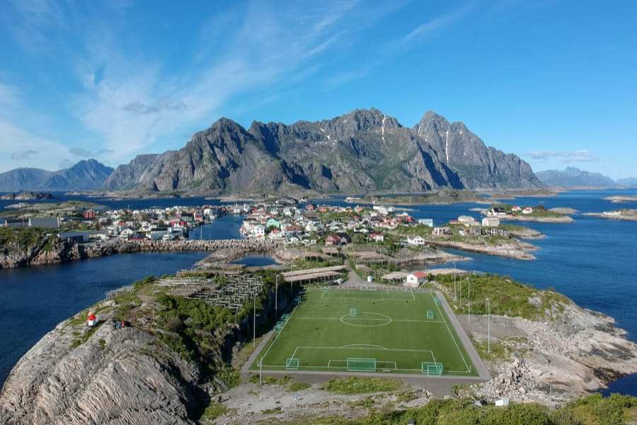 Dit levendige vissersdorp is uniek doordat het gebouwd is op verschillende kleine eilandjes, verbonden door bruggen en omringd door water en bergen. Slenter door de haven, langs de gekleurde huizen en kunstgalerijen. Henningsvær heeft een bruisende, kunstzinnige sfeer. En voor de sportliefhebbers mag het beroemde voetbalveld, spectaculair gelegen aan de rand van de eilanden zeker niet ontbreken!