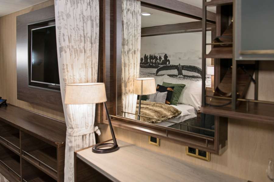 Overnachten aan boord kan in verschillende hutten, variërend in grootte en luxe. De tweepersoons Arctic Superior kamers hebben een raam, vanuit waar je een mooi uitzicht hebt. Maar er zijn ook standaard binnen- (één tot drie personen) en buitenhutten (twee tot drie personen) beschikbaar. De meeste buitenhutten hebben een raam óf een patrijspoort, waarvan een aantal met beperkt zicht. Welke hut je ook kiest, ze hebben allemaal een privébadkamer. Iets luxer? Kies dan voor een van de suites op het bovendek (21 – 30 m2). Deze stijlvol ingerichte kamers beschikken naast een luxe tweepersoonsbed ook over een eigen zithoek. Daarnaast zijn er ook Mini suites beschikbaar voor maximaal vier personen.