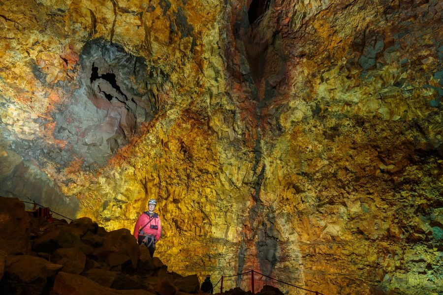 Uniek in de wereld en alleen op IJsland: daal af naar het hart van de slapende Þrihnúkagigar vulkaan, die meer dan 4000 jaar geleden uitbarstte. Na een 45-50 minuten durende indrukwekkende wandeling over het lavaveld ga je via een open kabellift tot op de kraterbodem 120 meter dieper, waar je 40 minuten de enorm diepe en kleurrijke magmakamer kan exploreren.